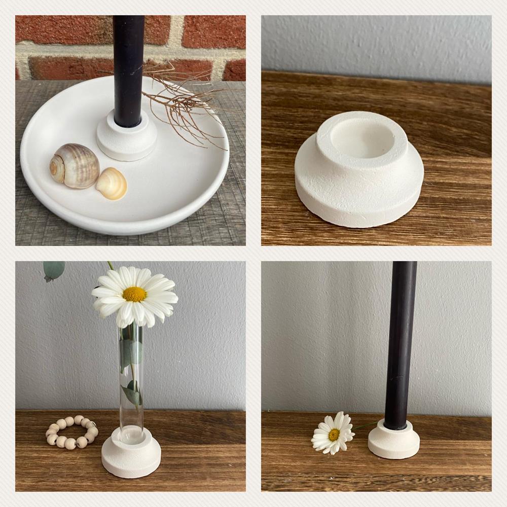 Çubuk Mumlar İçin Mum Tutucu Silikon Kalıp, modern ve zarif tasarımıyla her ortama uyum sağlar. Yüksek kaliteli silikon yapısı sayesinde mum, reçine, beton ve alçı gibi malzemelerle kolayca kullanılabilir. Hem dekoratif hem de işlevsel bir mumluk yapmak isteyenler için mükemmel bir seçenek!