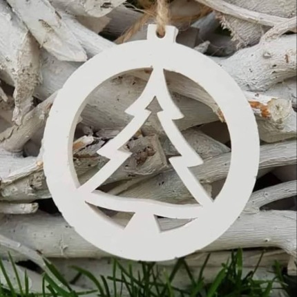 ✅ Tasarım: Yuvarlak çerçeve içinde zarif bir çam ağacı figürü.